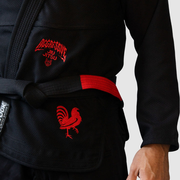 O design carrega a essência agressive: bordados precisos, contrastes fortes e a presença marcante do galo, símbolo da coragem que enfrenta o impossível e nunca recua.